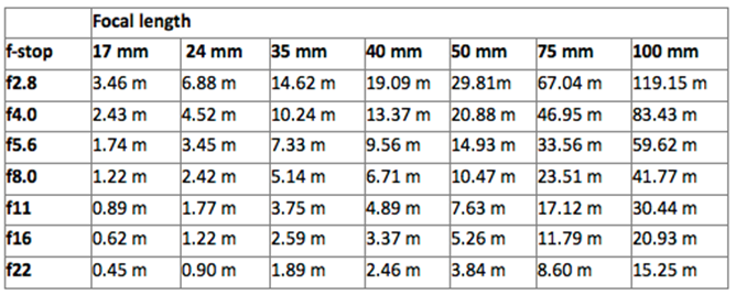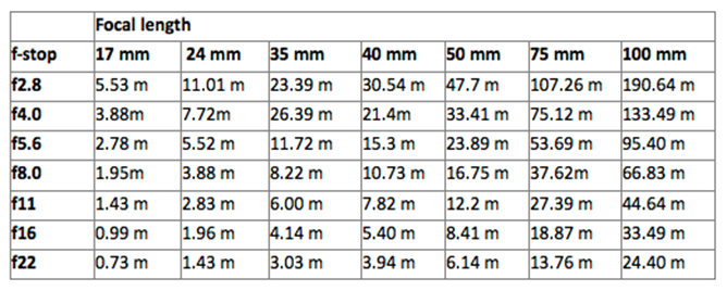 For and focal length and aperture setting, the chart for your style of camera will provide the distance that you should focus at. Remember to set the lens to manual focus.