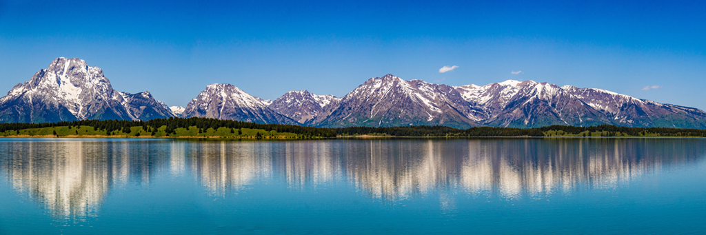 This is one shot with a wide angle lens, cropped to emphasis the expanse of the Tetons. There are insufficient pixels to allow for a large print. Pixel count dropped from 24mp to 7mp. Zooming in on the image will not reveal great detail.